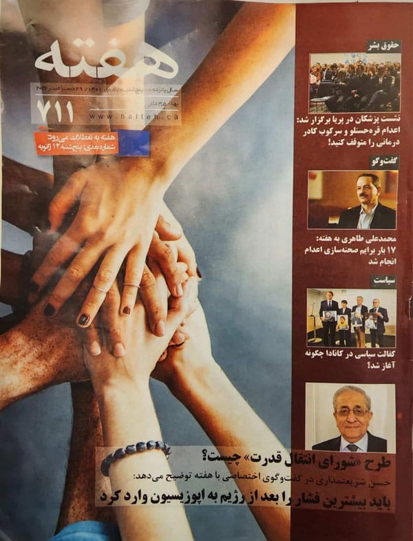 مصاحبه مجله خبری هفته کانادا با محمدعلی طاهری، بنیانگذار مکتب عرفان کیهانی حلقه در حاشیه برنامه اعتراضی پزشکان ایرانی تورنتو در بنیاد پریا: